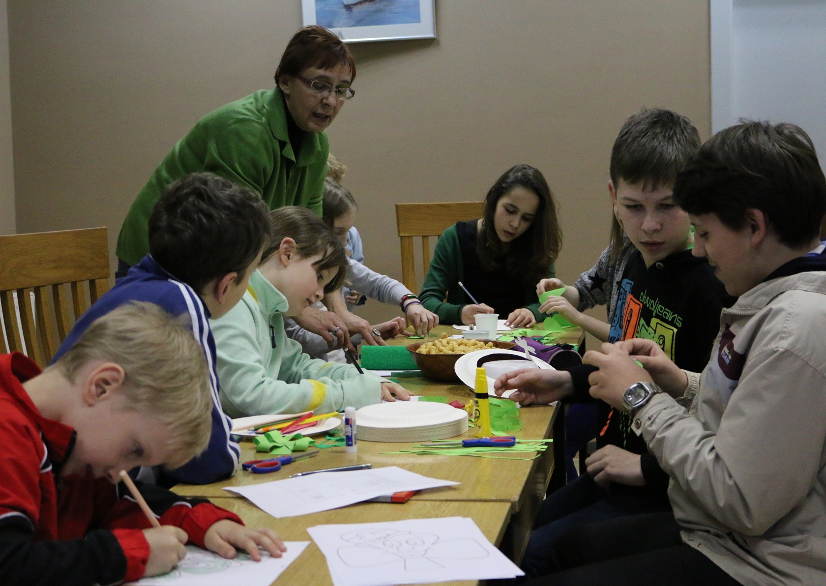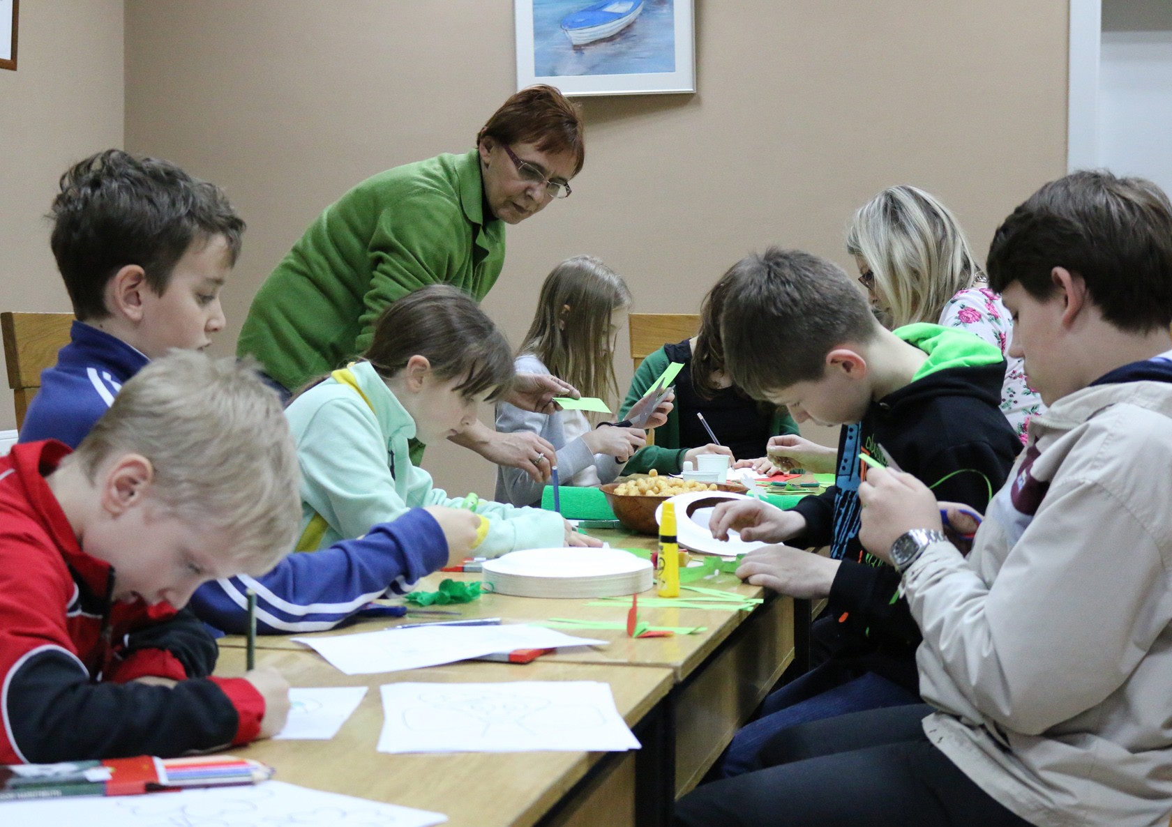Na radionici koju je posjetilo desetak djece od različitih vrsta papira i oblika izrađivale su se djeteline, irski simbol i nacionalni cvijet, izrađivali su se šeširi i kreativne razglednice s porukama. Radionicu su vodile Dubrakva Špančić i vjeroučiteljica Marina Ančić.