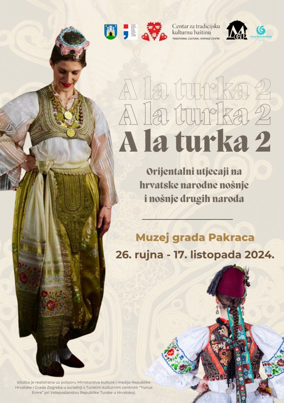Muzej Grada Pakraca u suradnji s Centrom za tradicijsku kulturnu baštinu organizira otvorenje izložbe "A la turka 2 – Orijentalni utjecaji na hrvatske narodne nošnje i nošnje drugih naroda", koje će se održati u četvrtak, 26. rujna, u 19 sati.