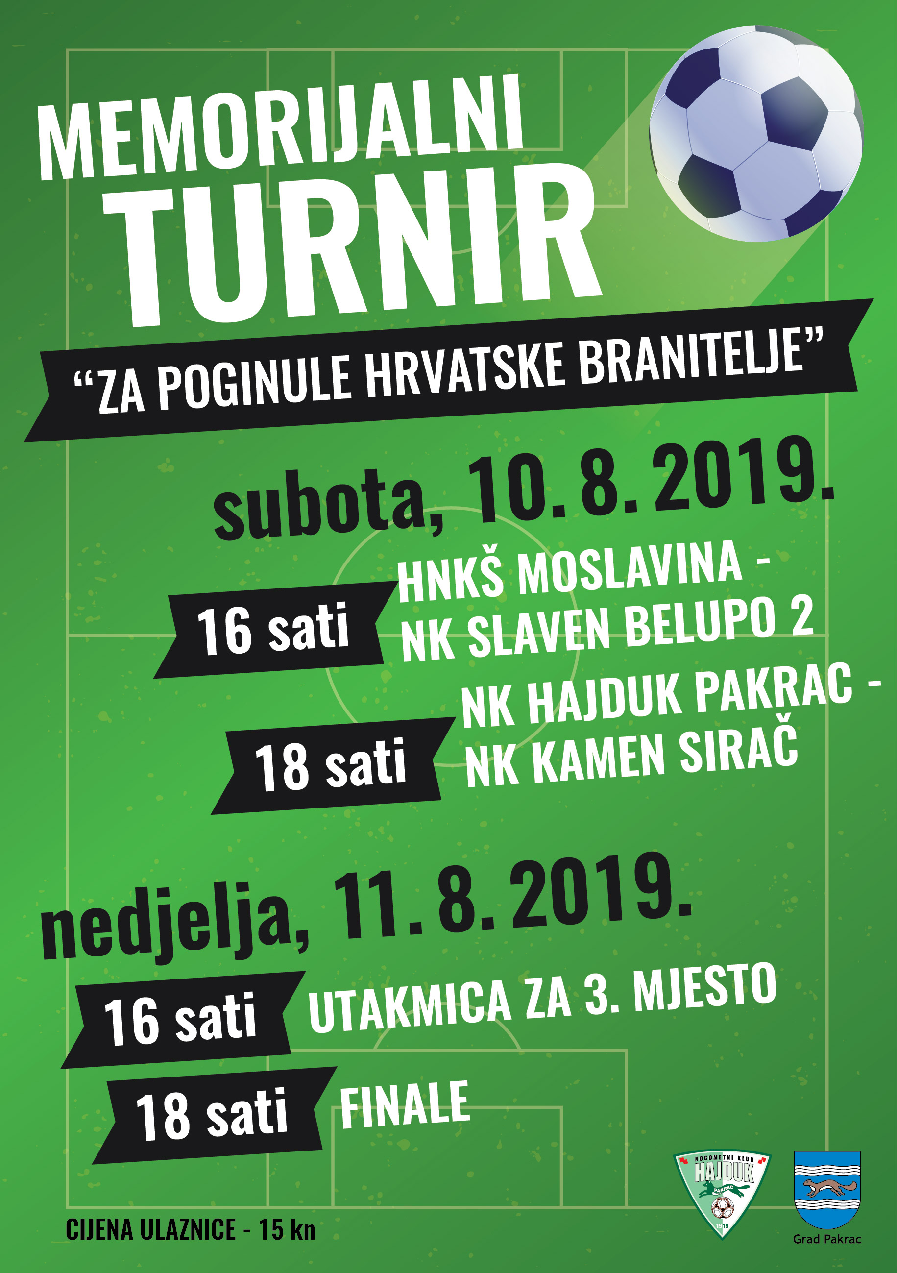 Istovremeno, u Pakracu, povodom Dana hrvatskih branitelja Pakraca i Lipika, a u organizaciji NK Hajduk Pakrac i Grada Pakraca, na Gradskom stadionu odigravat će se tradicionalni „Memorijalni turnir za poginule hrvatske branitelje”. Na turniru će uz pakrački Hajduk sudjelovati HNŠK Moslavina (Kutine), Slaven Belupo 2 (Koprivnica) i NK Kamen (Sirač).