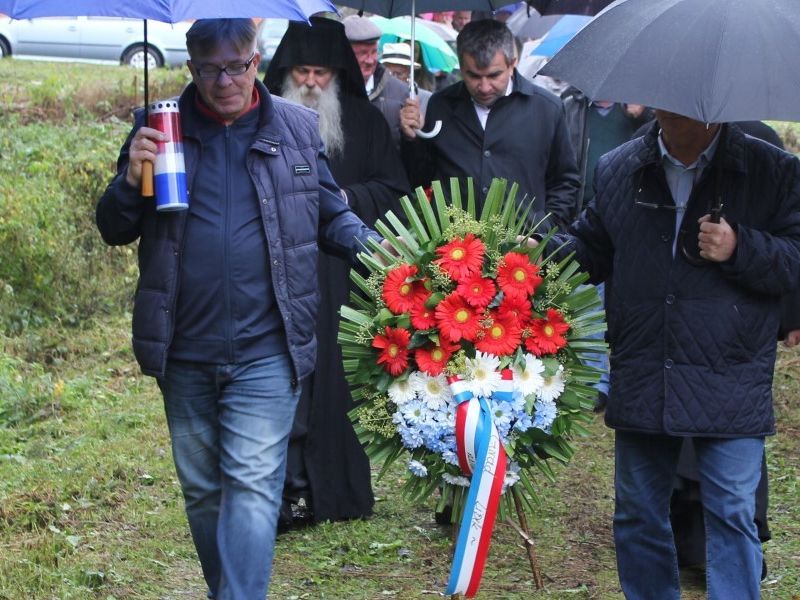 Nakon odavanja počasti polaganjem vijenaca i paljenjem svijeća, poginulim stanovnicima Kukunjevca održan je spomen kod masovne grobnice.