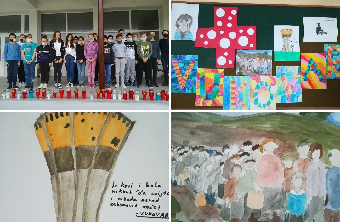 Paljenjem svijeća ispred škole, izložbom crteža posvećenih Vukovaru i kratkim programom osnovnoškolci u Poljani i Lipiku su odali počast žrtvama Vukovara i Škabrnje minutom šutnje.