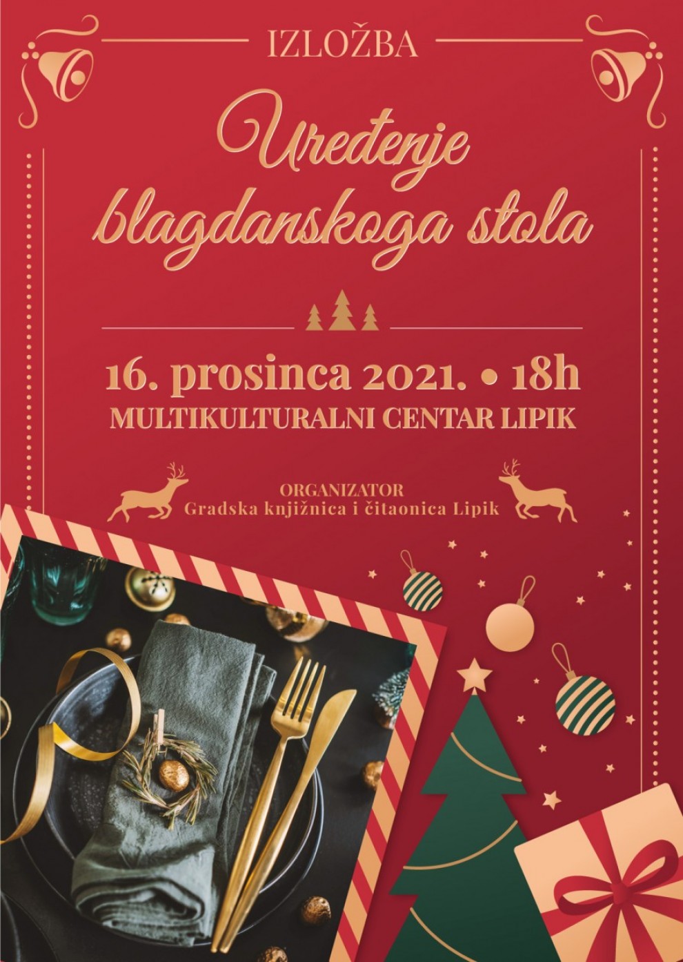 Nakon što je ovog tjedna održana izuzetno dobro posjećena Božićna radionica izrade ukrasnih vijenaca koju je vodila lipička cvjećarka Helena Szabo, Gradska knjižnica i čitaonica Lipik poziva na tradicionalnu izložbu „Uređenje blagdanskog stola“ koja će se održati u Multikulturalnom centru Lipik u četvrtak 16. prosinca s početkom u 18 sati.