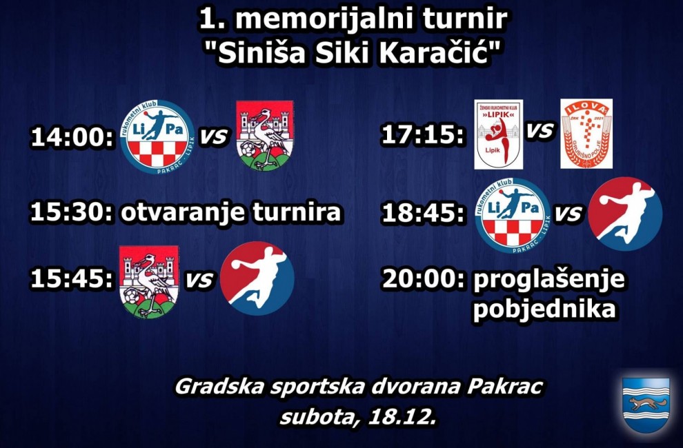 U spomen na Sinišu Karačića Sikija, Rukometni klub LiPa u subotu, 18. prosinca organizira 1. memorijalni turnir u pakračkoj sportskoj dvorani posveć ovom vrsnom sportašu i sportskom djelatniku.