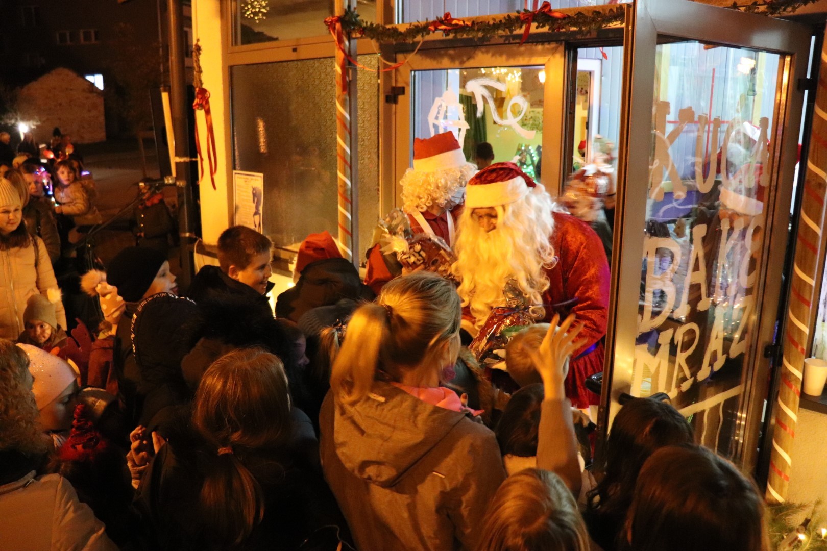Nakon što su se klinci oslikali i zabavili igrajući se u kući Bake Mraz dočekali su i Djeda Mraza koji je donio punu vreću poklona za sve mališane koji su ga dočekali, a dočekala ga je i pjevačka skupina mladih Eligio Lipik koja je kroz projekt „Lipik pjeva zajedno“ uz okupljene mališane i njihove roditelje Djedu Mrazu otpjevala pjesmu „Sretan Božić svakome“.