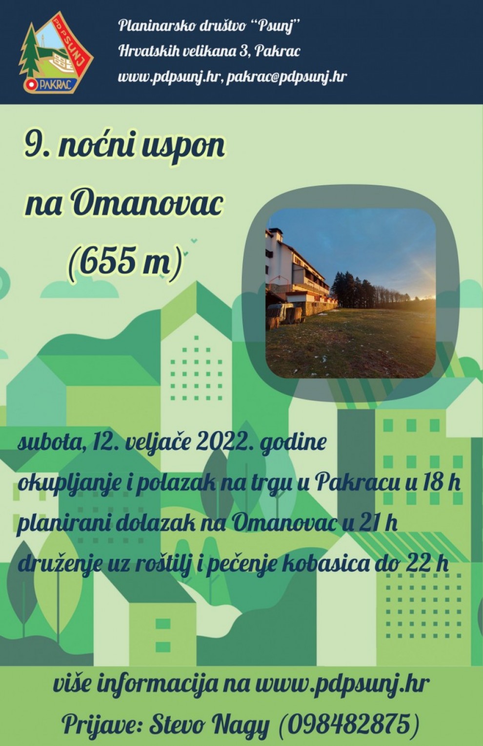 Planinarsko društvo Psunj objavilo je na svojim stranicama da i ove godine organiziraju noćni uspon na Omanovac. Uspon je planiran za subotu, 12. veljače u 18 sati, a kao i prethodnih godina okupljanje i polazak će biti ispred Osnovne glazbene škole Pakrac, odnosno na središnjem gradskom trgu.