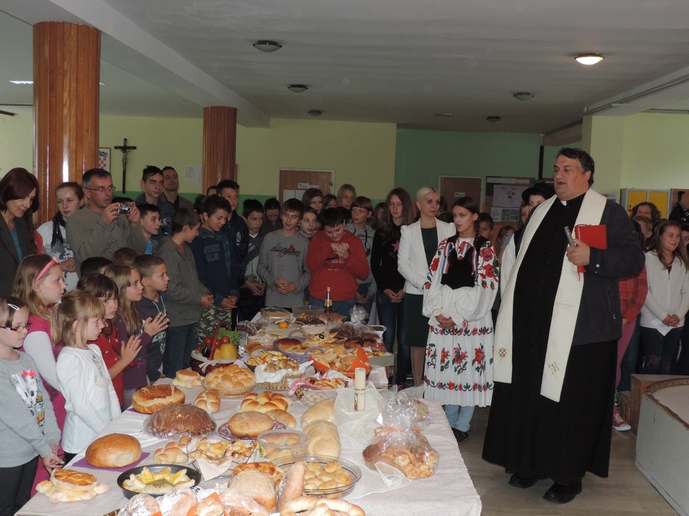 Nakon filma, izražavanja riječi zahvalnosti mamama, bakama i učiteljicama koje su pripremile kruhove, peciva i kolače izložene na stolu te čitanja molitve zahvalnosti Bogu za sve što je dao ravnateljica škole Klaudija Kovač pozvala je lipičkog župnika vlč. Jozu Zorića da blagoslovi sve okupljene i izloženu hranu. „Pozivam župnika da blagoslovi sve nas, vrijedne ruke koje su ovo jelo pripremile i svu ovu hranu, a posebno nas koji ćemo blagovati da naučimo biti zahvalni i dijeliti“, rekla je ravnateljica Kovač.