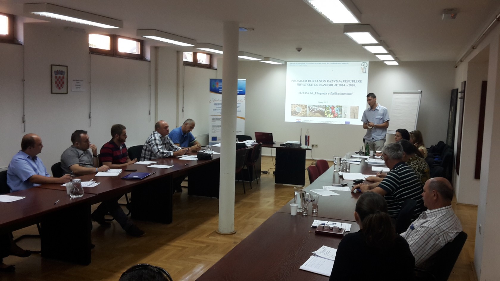 Na prvoj radionici u Požegi, kao što je to bilo tri dana ranije u Lipiku, razgovaralo se o Mjeri 4. "Ulaganje u fizičku imovinu" iz Programa ruralnog razvoja Republike Hrvatske za razdoblje 2014. – 2020., a na sljedećim edukacijama prolazit će se na temelju konkretnih primjera proces pripreme cjelokupne dokumentacije. "Sljedeći natječaj iz Mjere 4 očekuje se u devetom mjesecu i mišljenja smo da je sad pravo vrijeme da vi koji ste zainteresirani i koji ćete se moći kandidirati u okviru ove mjere, ako želite tome ozbiljno pristupiti da počnemo o tome razmišljati i da se počnemo pripremati.", istaknuo je Darian Husko pred okupljenim poljoprivrednicima i poduzetnicima iz Požeštine.