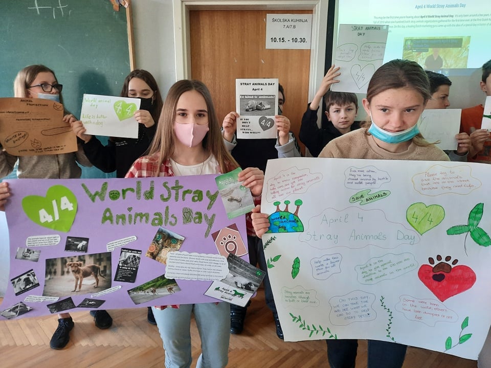 Učenici Osnovne škole Lipik na nastavi Engleskoga jezika u ponedjeljak, 4. travnja obilježili su Svjetski dan napuštenih životinja – "World Stray Animals Day".