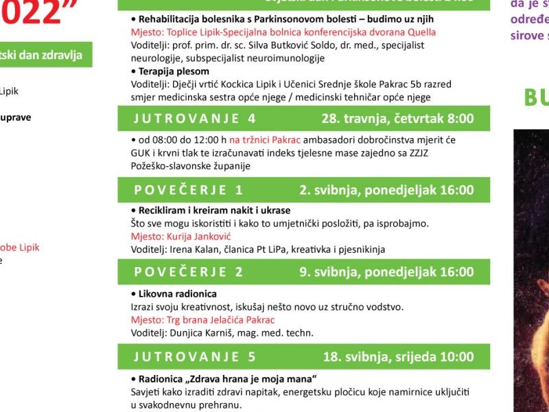 Palijativni tim LiPa poziva ovim putem sve zainteresirane da se pridruže 12. travnja u 14:00h u prostoru Toplica Lipik - Specijalne bolnice za medicinsku rehabilitaciju na događaju koji će se održati u konferencijskoj dvorani Quella.