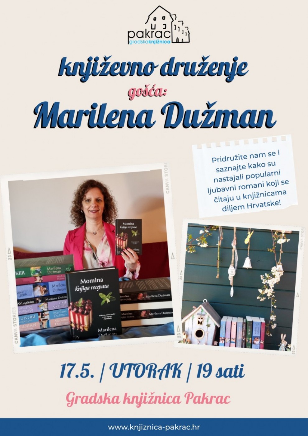 Marilena sama izdaje svoje naslove, a o njezinim planovima za budućnost, kao i romanima u pripremi, doznat ćete upravo u pakračkoj knjižnici, u utorak, 17. svibnja od 19 sati!