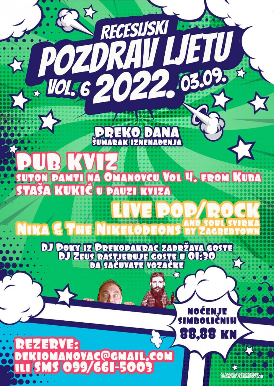 Najpoznatije šumsko druženje „Pozdrav ljetu“ održati će se u šestom izdanju predstojećeg vikenda, odnosno u subotu, 3. rujna, kod Planinarskog doma Omanovac, koji je ujedno i organizator ovog događanja. Nazivu je ove godine zbog smanjenog sadržaja šaljivo dodan epitet „recesijski“, iako sudeći po uobičajenom velikom odazivu te predloženom ovogodišnjem programu, očekuje se dobra zabava za posjetitelje svih uzrasta.