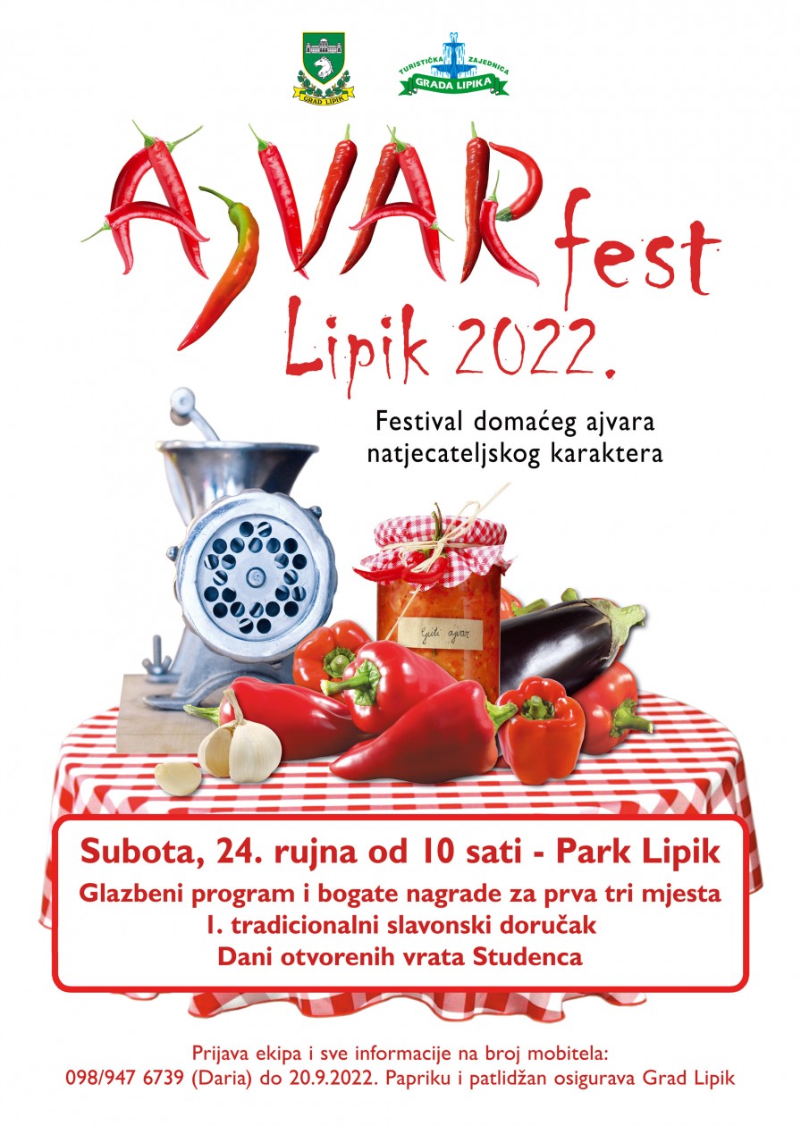 Pozivamo Vas na jedinstvenu manifestaciju u Slavoniji - Ajvarfest Lipik 2022.