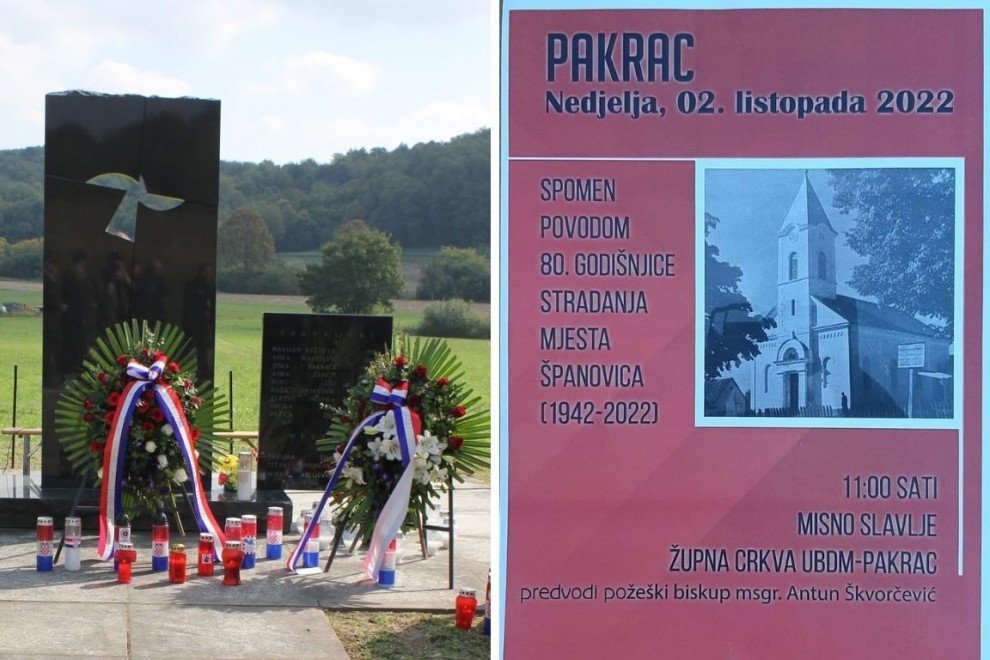 Istoga dana, 2. listopada obilježit će se i tužna 80. godišnjica stradanja mjesta Španovica (1942. – 2022.). Tim će povodom požeški biskup msgr. dr. Antun Škvorčević u 11:00h predvoditi misno slavlje u župnoj crkvi Uznesenja BDM u Pakracu.