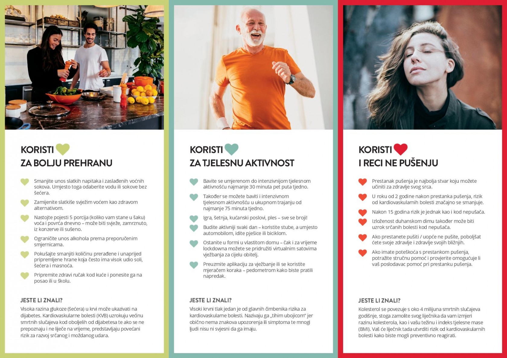 Ove se godine Svjetski dan srca obilježava pod sloganom „KORISTI SRCE“. Kriza u zdravstvu koju je prouzročio COVID-19 naglasila je hitnu potrebu za pronalaženjem različitih i inovativnih načina za povezivanje ljudi sa zdravljem srca. KORISTI SRCE nas povezuje s vlastitim srcem, kako bismo ga hranili i njegovali najbolje što možemo. Dobra vijest jest da se mnoge kardiovaskularne bolesti mogu spriječiti uvođenjem samo nekoliko jednostavnih dnevnih promjena. Obećajte od srca i za srce: da ćete jesti zdravije, biti tjelesno aktivniji i reći NE pušenju.