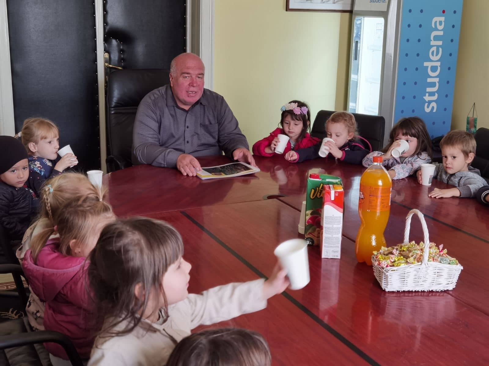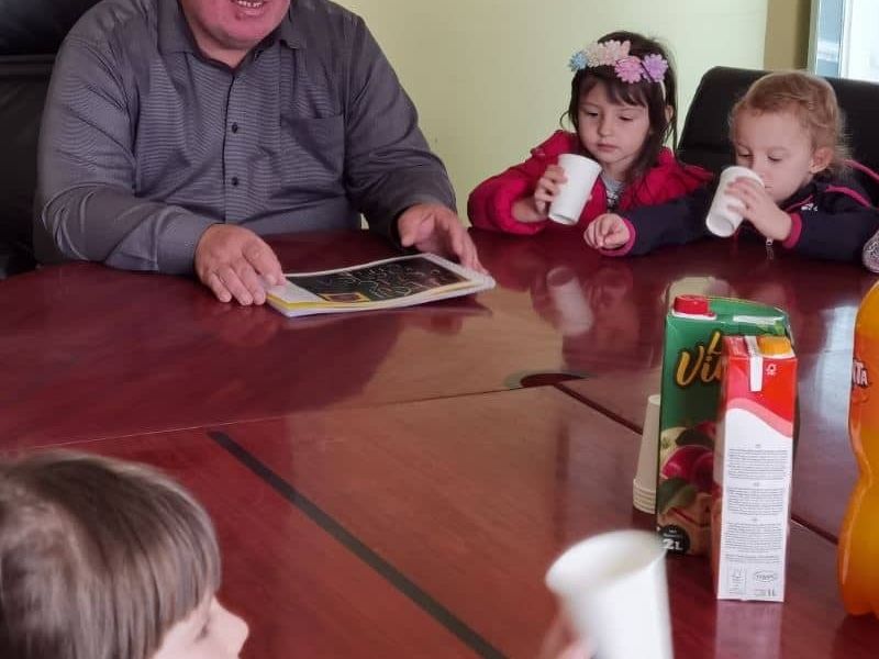 Razlog posjete naših najmlađih sugrađana gradonačelniku Kasani bio je poklon kojeg su djeca sa svojim odgojiteljicama napravila, a ponijeli su ga sa sobom da bi ga predali gradonačelniku.