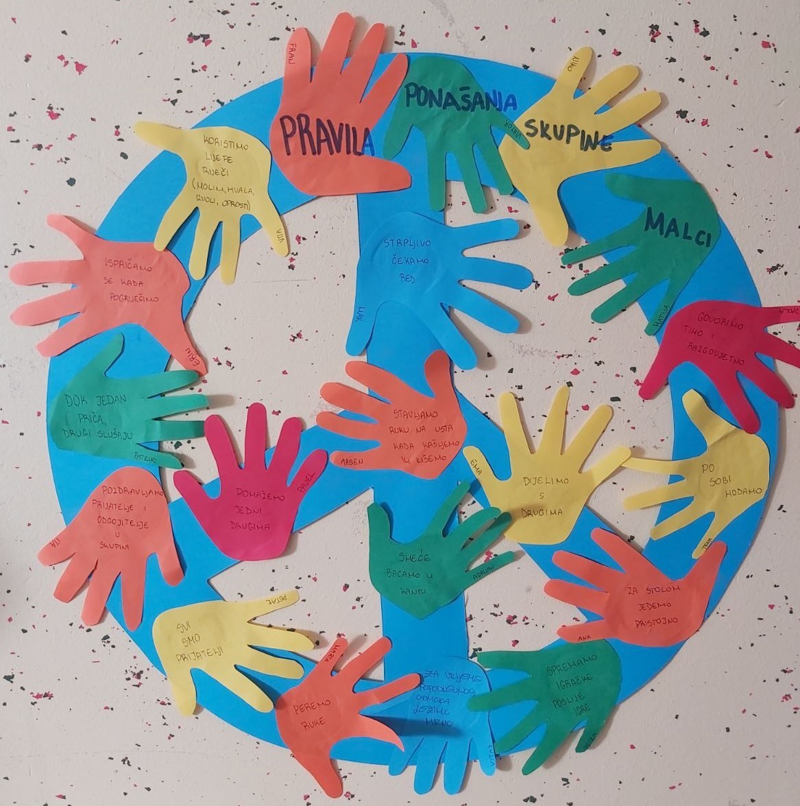 Međunarodni dan nenasilja obilježila je mlađa vrtićka skupina „Malci“ čitajući slikovnice edukativnog sadržaja i izradom plakata, simbol mira PEACE na kojem se nalaze dječji dlanovi različitih poruka poput: „Strpljivo čekamo red“, „Ispričamo se kada pogriješimo“, „Svi smo prijatelji“, „Koristimo lijepe riječi“, „Dok jedan priča drugi slušaju“ simboliziraju nenasilje!
