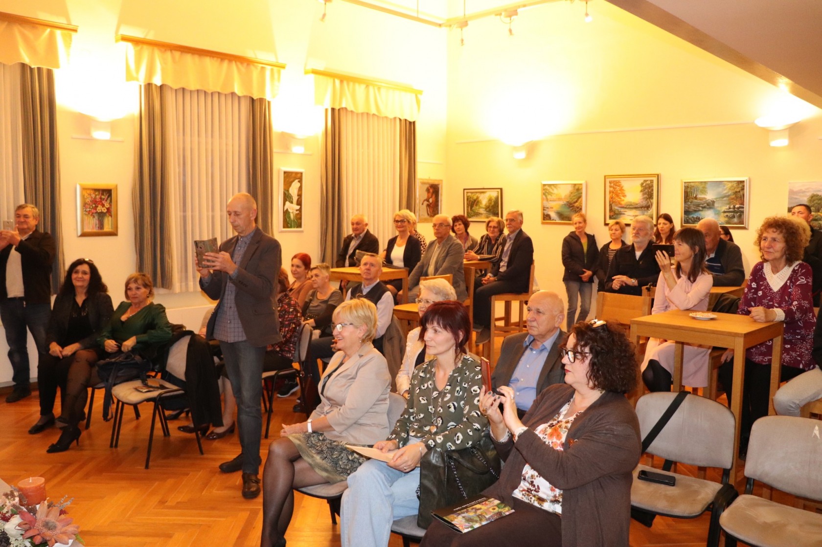 U dupkom ispunjenoj dvorani lipičkog Multikulturalnog centra publika je imala prigodu uživati u ugodnoj pjesničkoj večeri, dok je autorica izložbe odgovarala na pitanja Ljubice Cerić Musil o svojem umjetničkom radu.