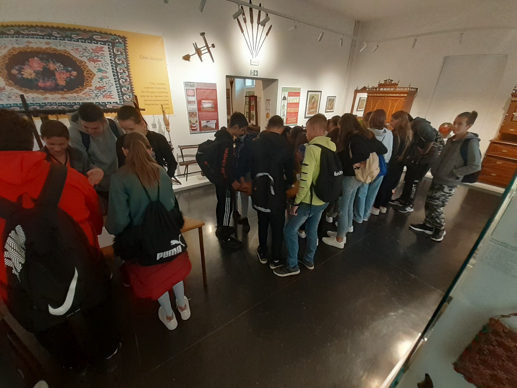 S obzirom na to da je početak ove školske godine nešto opušteniji od prethodne dvije školske godine, vezano za COVID situaciju, učenici su prvo 11. listopada imali terensku nastavu u Kutini kako bi se bolje upoznali s kulturom, baštinom i poviješću šireg zavičaja. Obišli su Muzej Moslavine, Gradsku knjižnicu Kutina, primjere svjetovne arhitekture u Crkvenoj ulici (drvene moslavačke kuće) i župnu crkvu.