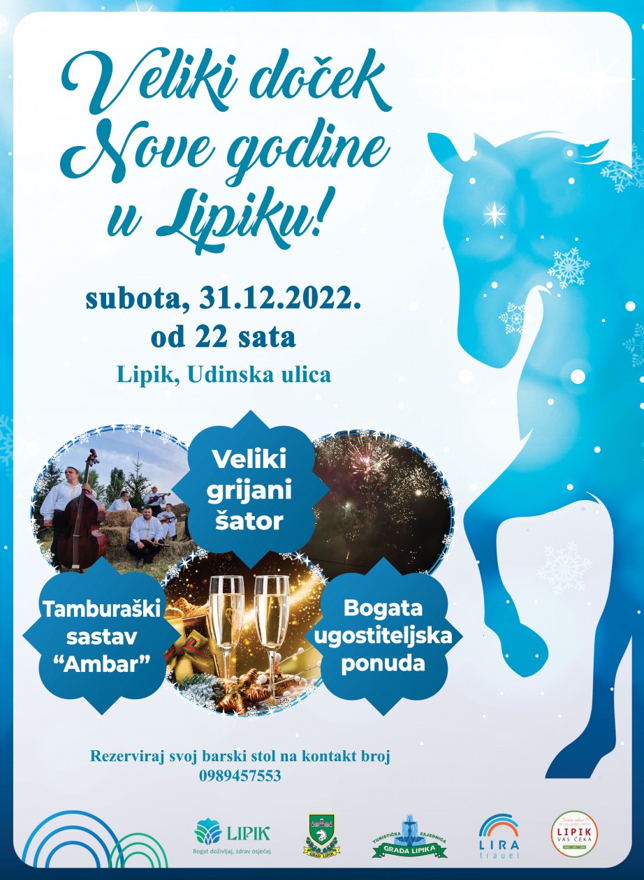 Ako još niste sigurni kamo će te za novogodišnji doček, u Lipiku Vam je zagarantiran dobar provod. Pridružite se na dočeku nove godine u Udinskoj ulici. Od 22 sata očekuje Vas veliki grijani šator uz Tamburaški sastav Ambar, ugostiteljsku ponudu i nezaboravni doček nove 2023. godine!