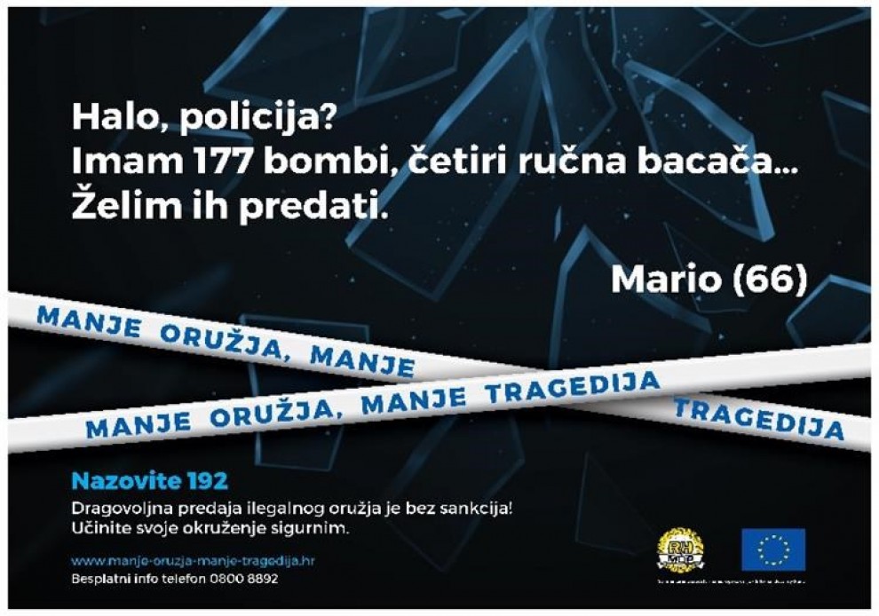 Bitno je da građani sami ne donose oružje i eksplozivna sredstva već da želju za dragovoljnom predajom prijave na broj 192 te sačekaju dolazak osposobljenih policijskih službenika koji će na dogovoreno mjesto doći u civilnoj odjeći vozilom bez policijskih obilježja – ističu u policiji.