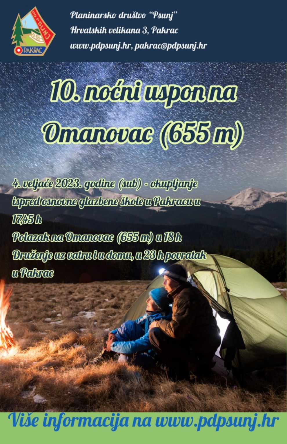 U organizaciji PD Psunj u subotu 4. veljače bit će organiziran 10. noćni uspon na Omanovac.