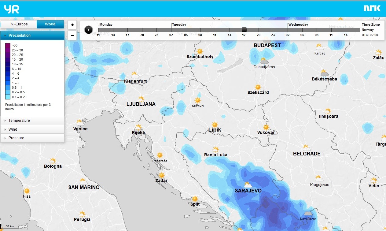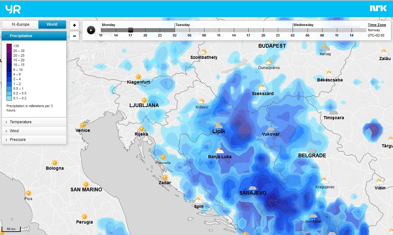 Prognoze DHMZ-a potvrđuju i karte razvoja naoblake preuzetih s meteorološke stranice yr.no koje pokazuju da od utorka na pakračko-lipičkom području slijedi razvedravanje.