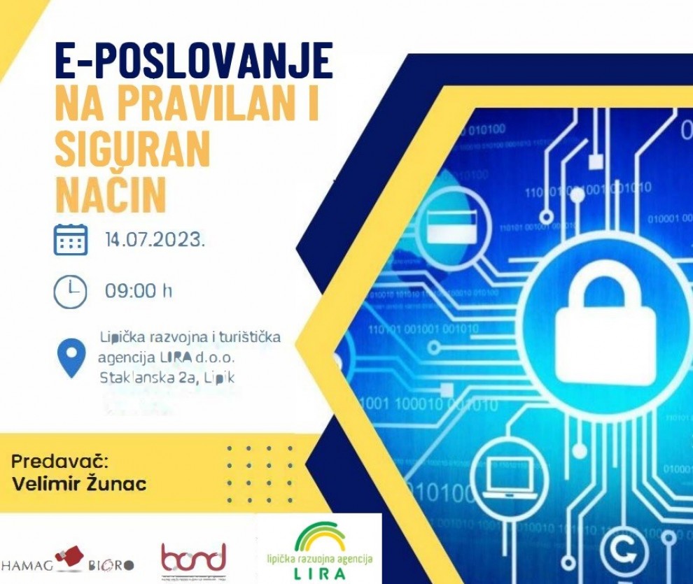 Radionica "e-Poslovanje na pravilan i siguran način" održat će se u konferencijskoj dvorani Lipičke razvojne i turističke agencije na adresi Staklanska ulica 2a u Lipiku.