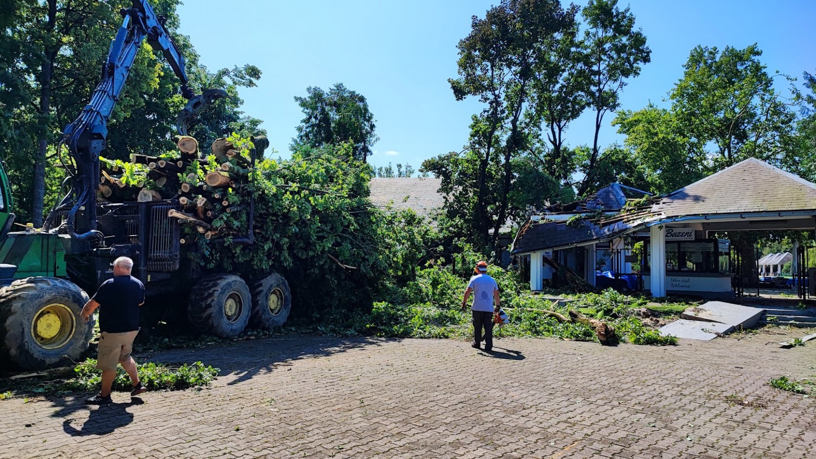 Uslijed jučerašnjeg nevremena značajna šteta počinjena je i na lipičkim bazenima, naročito na samom ulazu gdje se veliko stablo urušilo na lijevi dio naplatnih kućica pri čemu je potpuno uništio krovište, a korijenjem raspolovio betonsku prilaznu rampu. Radnim strojem uklonjeno je deblo, ulaz je očišćen, dok djelatnici Lipkoma od jučerašnjih popodnevnih sati marljivo rade kako bi se unutarnji dio kupališnog kompleksa doveo u funkcionalno stanje.