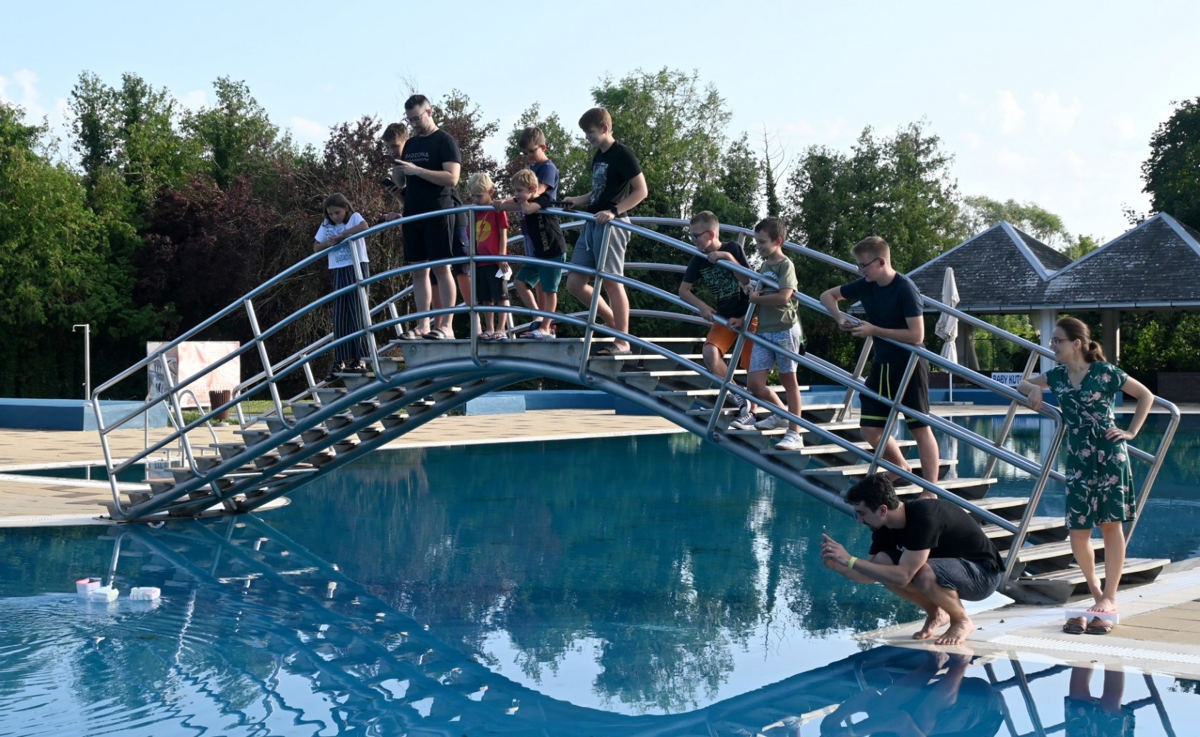 Starije, višegodišnje polaznike Robokacije zatekli smo u drugom kraju sale kako praktično od nule izrađuju gliser od komada stiropora. Laički su pojasnili da proces izrade glisera uključuje elemente hidrodinamike, brodograditeljstva, 3D printanja te bežičnog upravljanja s kamerom. Uz podršku i na oduševljenje mlađih polaznika, svojeručno izrađene glisere na daljinsko upravljanje iskušali su malom kružnom utrkom oko fontane u srednjem bazenu lipičkog kompleksa.