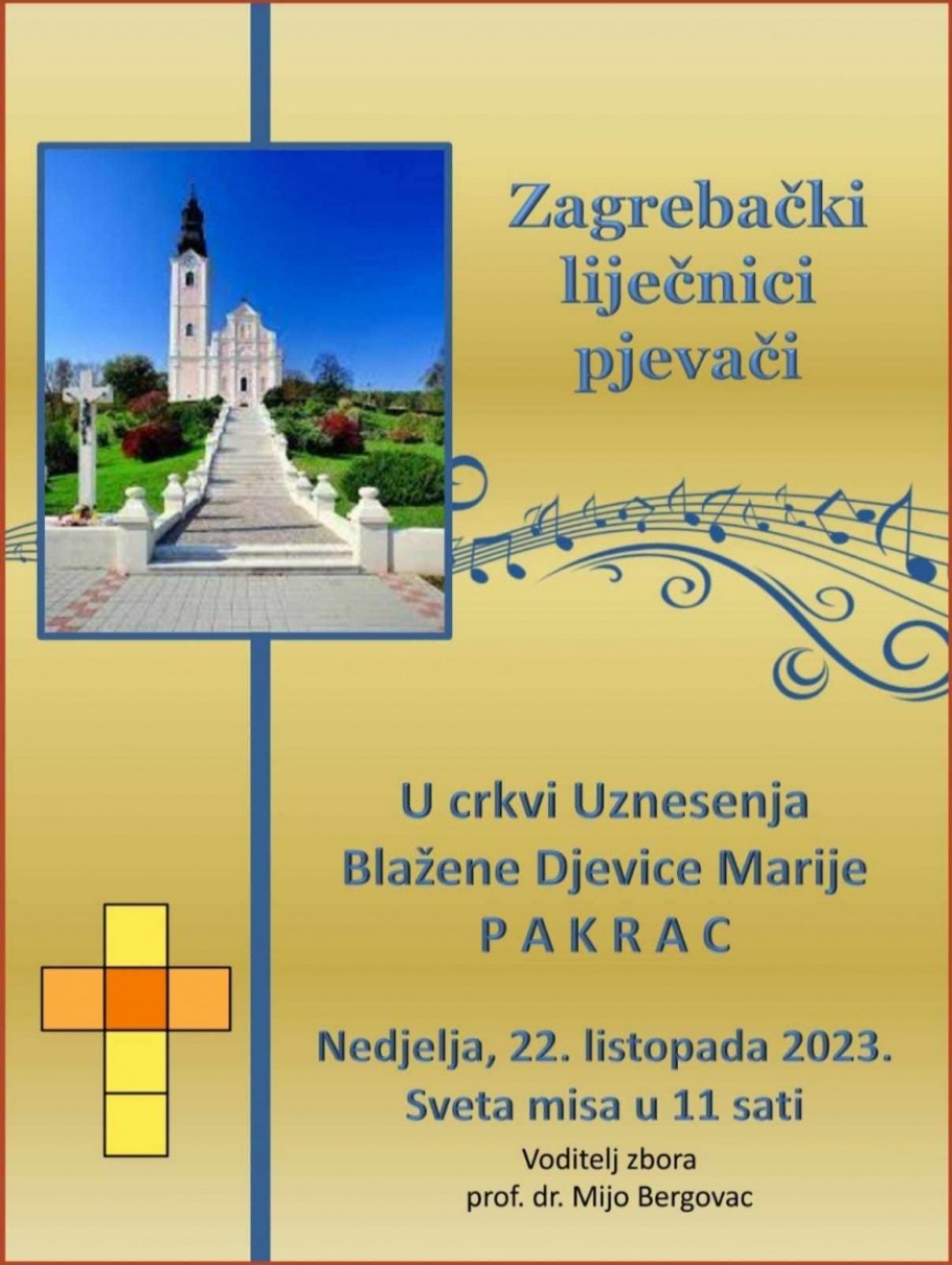 U crkvi Uznesenja Blažene Djevice Marije u Pakracu, 22. listopada ove godine, tijekom svečane mise koja započinje u 11 sati, vjernici će moći uživati u posebnom glazbenom doživljaju, jer će se upriličiti nastup renomiranog pjevačkog zbora - Zagrebački Liječnici Pjevači (ZLP). Ovaj zbor, sastavljen isključivo od liječnika, stomatologa i studenata ovih struka, pod vodstvom prof. dr. Mije Bergovca, nastupit će u sklopu svoje dugogodišnje glazbene tradicije, doznajemo od vlč. Joze Zorića.