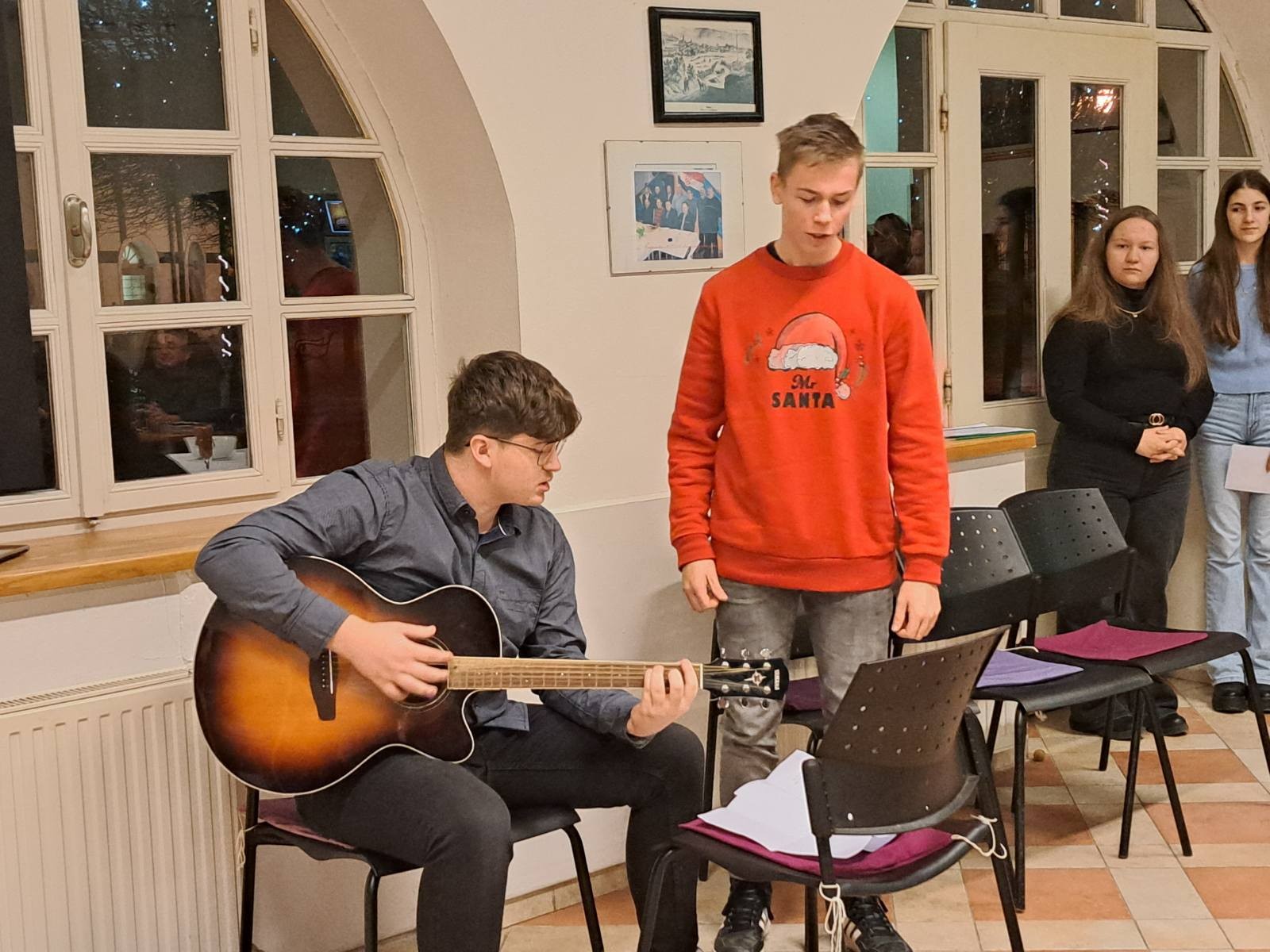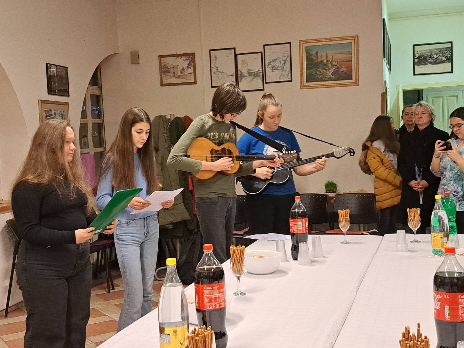 Program otvaranja izložbe, koja će se moći pogledati idućih mjesec dana, završili su učenici Jakov i Srećko, izvodeći pjesmu "43550 Pakrac, Hrvatska" uz gitaru Siniše Babića.