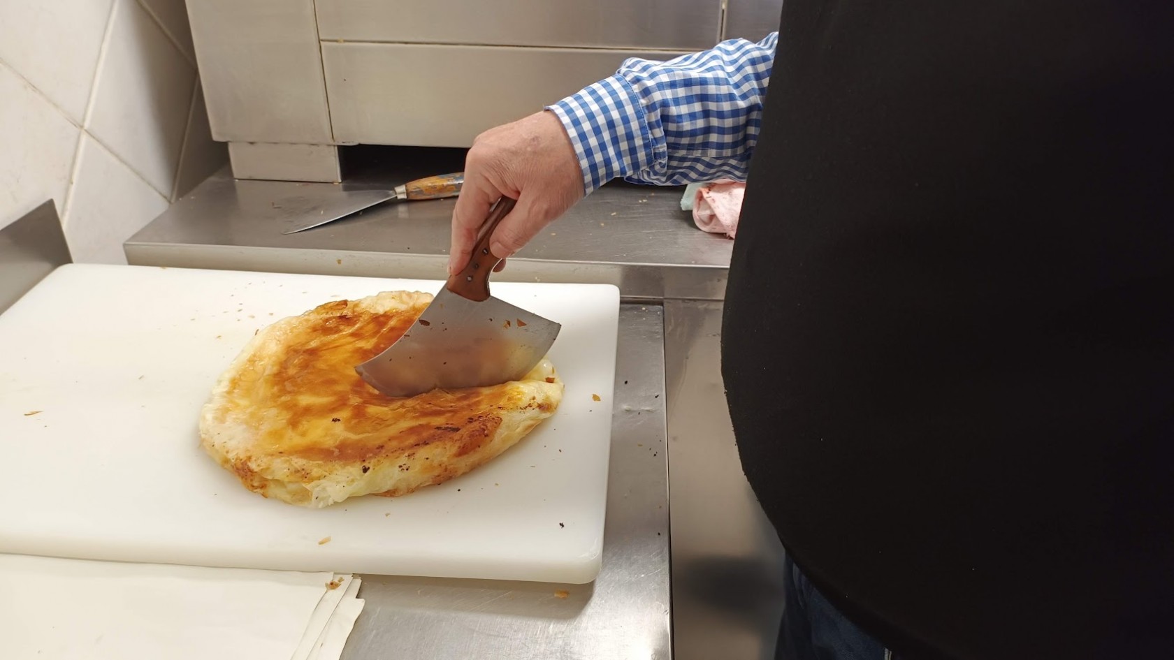 S neizbježnim smješkom na licu i nožem u ruci, zatekli smo ga u kuhinji kako svježe ispečen burek trančira na porcijske četvrtine… Kako smo i pretpostavljali, novina i nije bilo previše.