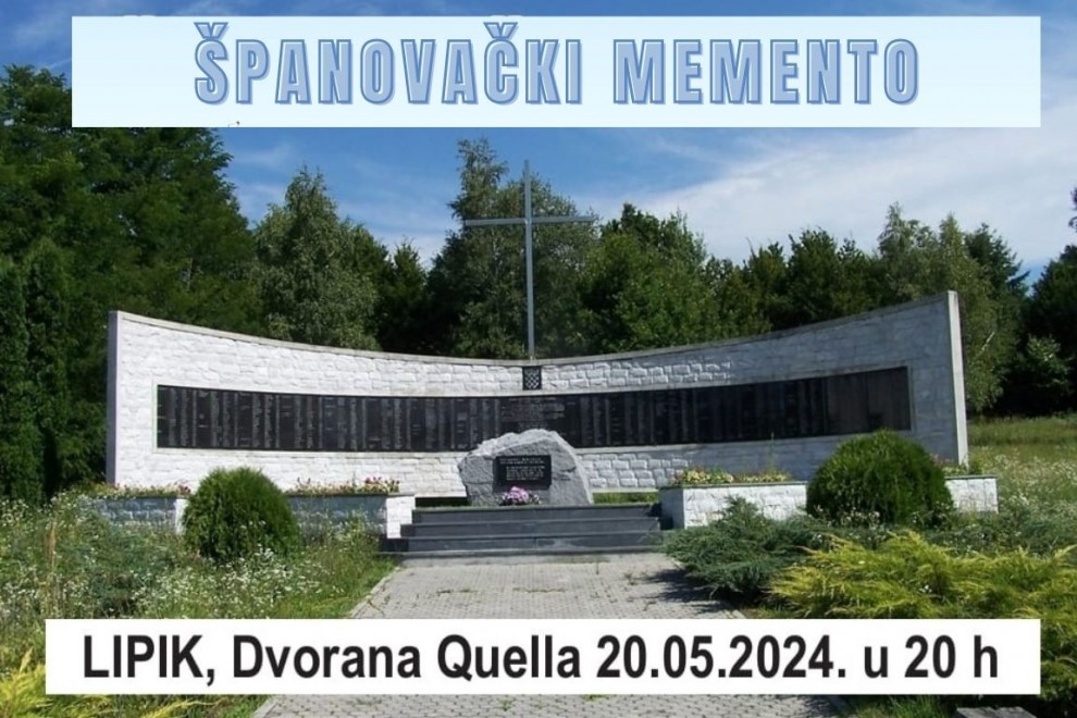 Konferencijska dvorana „Quella“ u Lipiku bit će mjesto posebne filmske projekcije koja će se održati u ponedjeljak, 20. svibnja u 20 sati. Film "Španovački memento", scenaristice i redateljice Nade Prkačin, donosi potresnu priču o tragičnom napadu na selo Španovicu tijekom Drugog svjetskog rata.