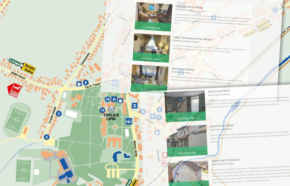 „U Lipiku djeluje ukupno 14 privatnih iznajmljivača koji su otvorili 24 smještajne jedinice što znači da je u privatnom smještaju dostupno 57 glavnih kreveta. Dodamo li kategorizirani smještaj Toplica Lipik s tri objekta, dolazimo do 147 glavnih kreveta koji su na raspolaganju turistima. Kada analiziramo vrste smještajnih jedinica, primjećujemo da većinu čine apartmani, ali tu su i sobe, studio apartmani te jedna kuća za odmor. Kategorizirani smještaj u Lipiku obuhvaća jedan objekt s 2 zvjezdice, sedam objekata s 4 zvjezdice, dok je najviše smještaja u kategoriji s 3 zvjezdice“, navodi Kovačić.