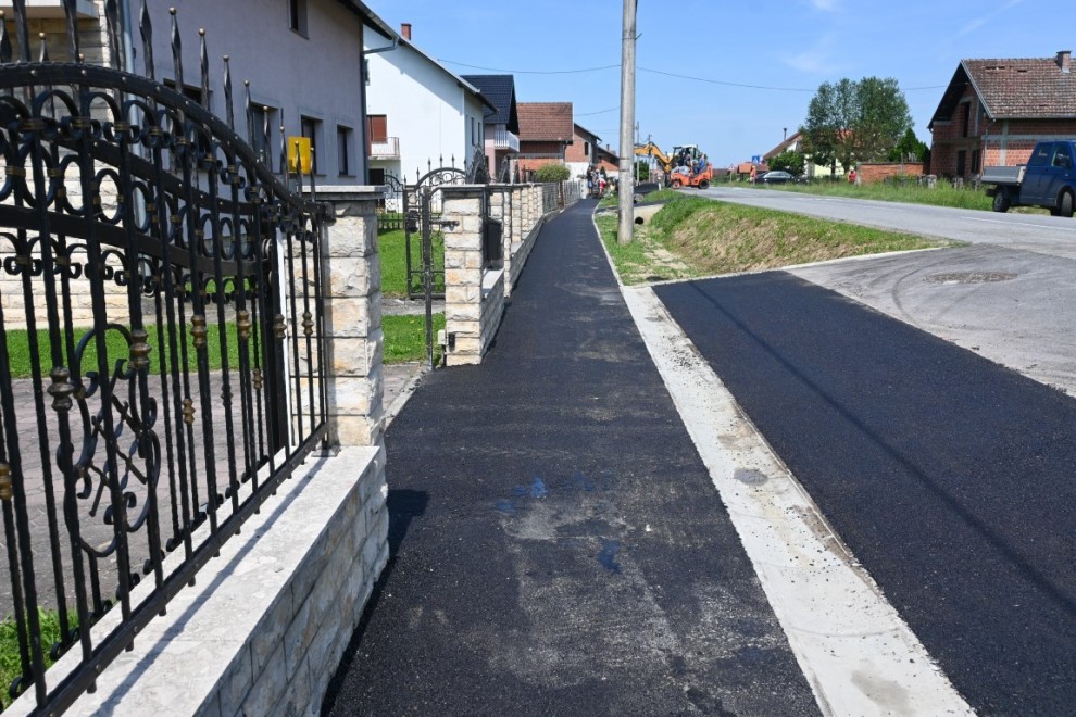 Posjetom radilištu, radnike i mehanizaciju smo zatekli na radovima nasuprot vatrogasnog doma DVD-a Dobrovac gdje je i dalje na snazi regulacija prometa, a za asfaltirati je preostalo stotinjak metara posljednjeg kraka nogostupa pri kraju selu. Nakon postavljanja asfaltnog sloja, Strganac najavljuje pristupanje čišćenju i uređenju bankina i zelenih površina pored nogostupa.