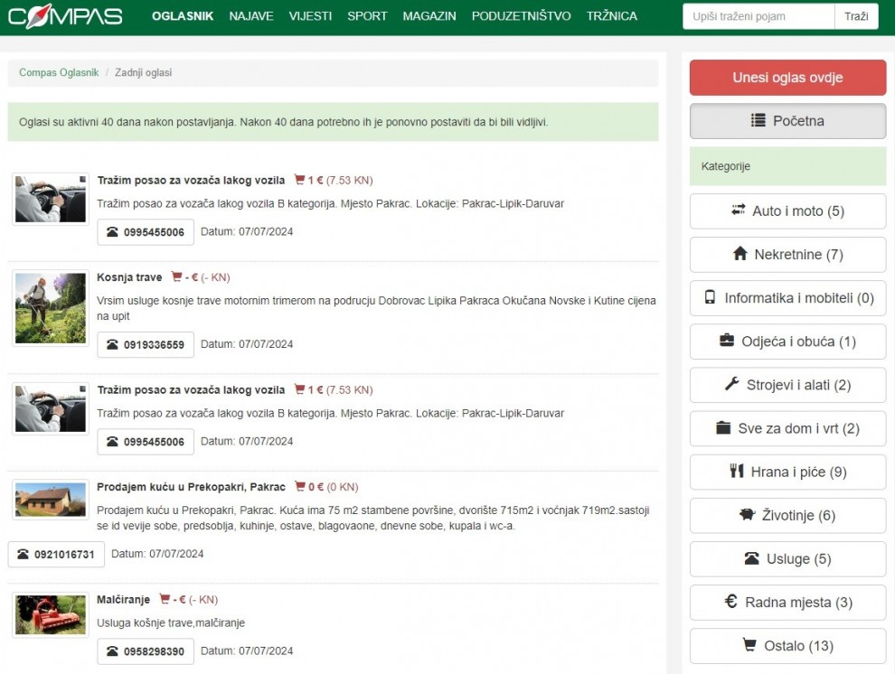 Naš oglasnik pruža jednostavan, besplatan i učinkovit način povezivanja potencijalnih kupaca i prodavača s područja Lipika, Pakraca i šire okolice. Uključite se i objavite svoj besplatni mali oglas već danas!