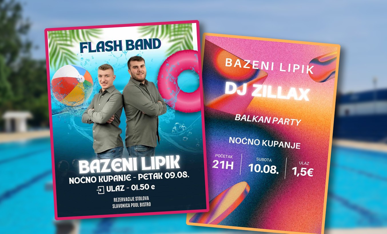 Predstojećeg vikenda Bazeni Lipik ponovo jamče dvije uzbudljive večeri ispunjene vrhunskim zvukom i raznovrsnim osvježenjima. Sve ljubitelje noćnog provoda očekuje idealna prilika za noćno kupanje kombinirano s dobrom zabavom.