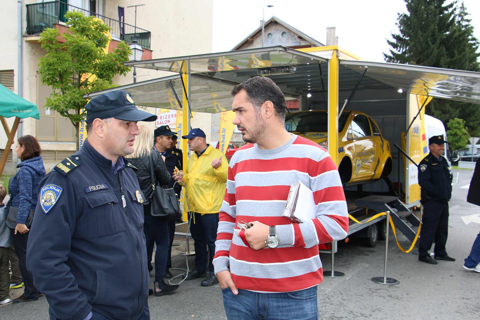 Prije početka 13. Dječje biciklističke utrke na prostoru ispred Tržnice u okviru Dana otvorenih vrata policije i Sajma mogućnosti policijski službenici su djeci nastojali predstaviti i pobuditi interes za neke od dodatnih mogućnosti bavljenja raznim slobodnim aktivnostima, a istovremeno im približiti policiju i njezin način rada. Na štandovima policije za tu svrhu izložena je policijska oprema i vozila, a danas je s policajcima na štandu bila i predstavnica Hrvatskog centra za razminiravanje čime je djeci prezentirano kako se trebaju ponašati ako naiđu na minski sumnjive naprave. Osim toga djeca su imala prilike isprobati atraktivni HAK-ov simulator prevrtanja, a djelatnici kriminalističke policije djecu su upoznali i s opasnostima zloupotrebe opojnih droga. Na štandu kod kontakt policajaca Demartinija i Majora iz Policijske postaje Pakrac djeca i stariji građani imali su priliku besplatno registrirati bicikl.