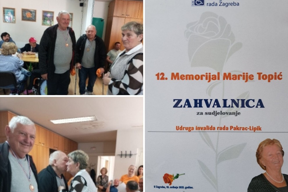 Članovi Udruge invalida rada Pakrac-Lipik sudjelovali su u subotu, 10. svibnja, na 12. Memorijalu Marije Topić, tradicionalnom sportskom i rekreativnom događaju koji organizira Udruga invalida rada grada Zagreba u čast svoje bivše predsjednice. Manifestacija je okupila brojne sudionike iz cijele Hrvatske, promovirajući druženje, sportski duh i međusobnu potporu među osobama s invaliditetom.