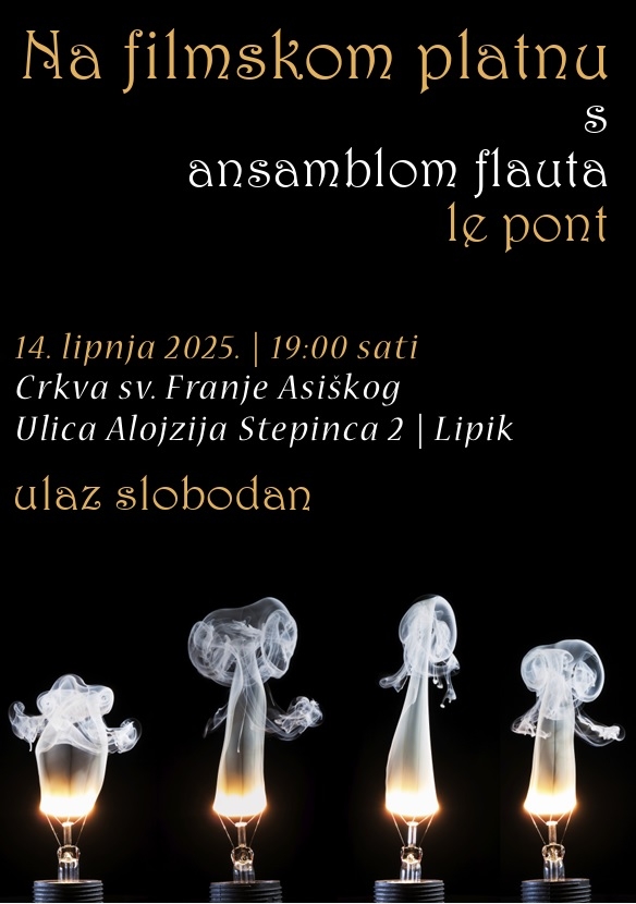 Koncert u Lipiku bit će posvećen glazbi iz poznatih filmskih klasika. Repertoar uključuje sve od bezvremenskih melodija iz filmova kao što su Casablanca, Čarobnjak iz Oza i Mamma Mia, do suvremenih hitova poput Top Gun i Pearl Harbor. Izvedbe skladbi velikana filmske glazbe – Johna Williamsa, Ennia Morriconea, Hansa Zimmera i drugih – interpretirat će se u nježnoj, ali izražajnoj verziji za ansambl flauta, što obećava posebni glazbeni doživljaj.