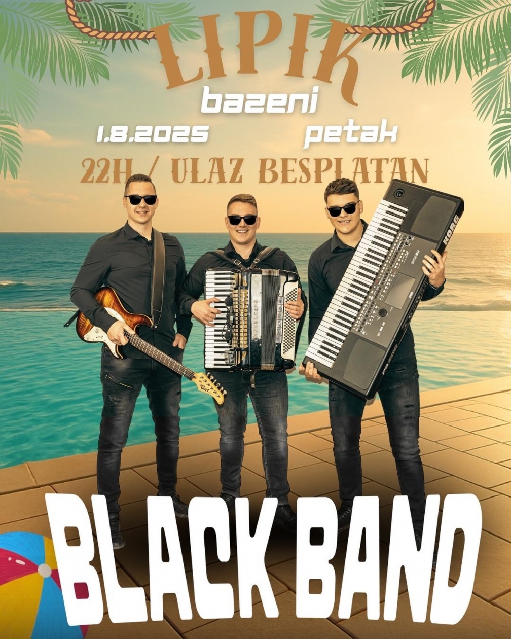 Na prostoru lipičkih bazena u petak, 1. kolovoza, s početkom u 22 sata održat će se nastup zabavnog sastava Black Band. Ulaz za posjetitelje je slobodan.