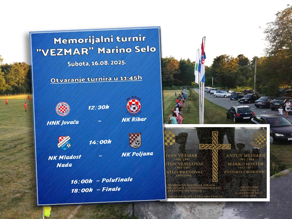 U organizaciji HNK „Jovača“ i pod pokroviteljstvom Grada Lipika 16. kolovoza na nogometnom igralištu u Marinom selu, bit će održan cjelodnevni tradicionalni Memorijalni turnir „VEZMAR“, posvećen Ivanu Vezmaru, Antunu Veselovcu, Antunu Hrenovcu, Antunu Mlinariću, Marku Hosteru i Zvonku Crnkoviću - poginulim igračima HNK „Jovača“, kao i svim stradalnicima Domovinskog rata.