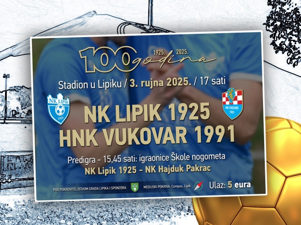Kao što je poznato, nogometni klub Lipik 1925 ove godine slavi stotinu godina postojanja, a početak proslave ovog vrijednog jubileja bit će u srijedu, 3. rujna, na stadionu u Lipiku. Prvi od ukupno dva dana programa donosi sportska događanja, s fokusom na prijateljsku utakmicu domaćina i prvoligaša HNK Vukovar 1991. Krajem mjeseca, preciznije 27. rujna, bit će organizirana svečana skupština kluba, a u nastavku večeri i „Bijela noć“…