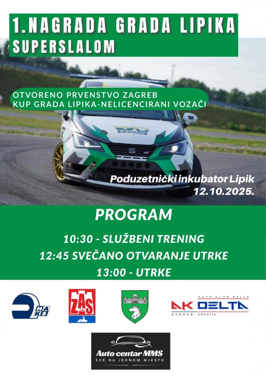 U nedjelju, 12. listopada, prostor Poduzetničkog inkubatora u Lipiku pretvorit će se u pravu automobilističku arenu jer će se ondje održati 1. Nagrada Grada Lipika u superslalomu, uzbudljivo natjecanje koje spaja brzinu, adrenalin i vještinu vožnje.