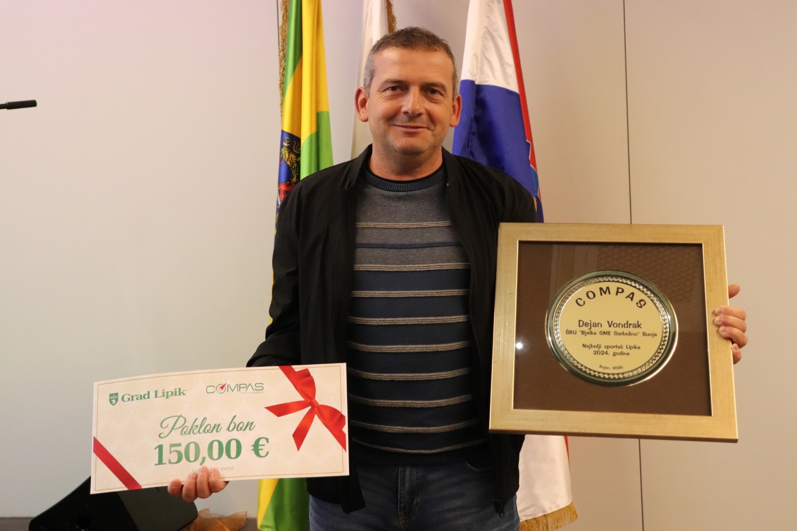 Nagradu najboljem sportašu godine Dejanu Vondraku uručili su gradonačelnik Lipika Vinko Kasana i urednik Compasa Matija Kulhavi.