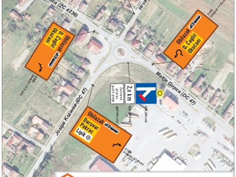 Za ostala vozila promet će se odvijati obilazno sljedećim pravcem: