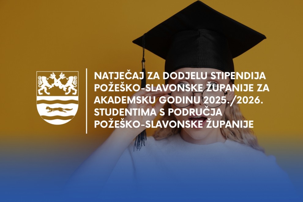 Požeško-slavonska županija raspisala je Natječaj za dodjelu stipendija studentima s područja županije za akademsku godinu 2025./2026. U proračunu su osigurana sredstva za 20 stipendija, koje će se dodjeljivati u tri kategorije.