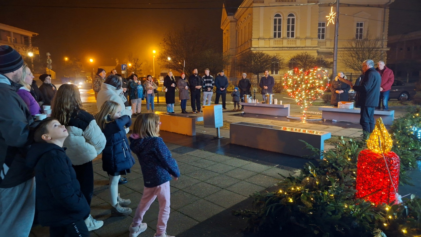 Svijeću je upalio Filip Sigeti, učenik prvog razreda Osnovne škole Lipik, pred tridesetak okupljenih građana koji su se i ove nedjelje odazvali zajedničkoj molitvi i kratkom obredu. Molitvu je predvodio vjeroučitelj Slavko Balažević, naglasivši značenje posljednje adventske svijeće koja u prvi plan stavlja ljubav kao temeljnu kršćansku i ljudsku vrijednost.