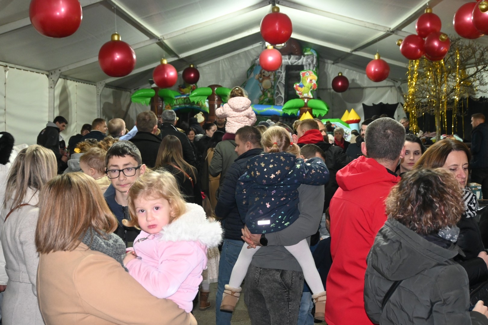 Program je započeo u 17 sati s uobičajenim sadržajima. Najmlađi su se posebno radovali napuhancima, a središnji dio večeri obilježila je skupina „Šareni svijet“ s pjesmicama, igrokazima i mini predstavama prilagođenim djeci, uvodeći ih u blagdanski svijet mašte.