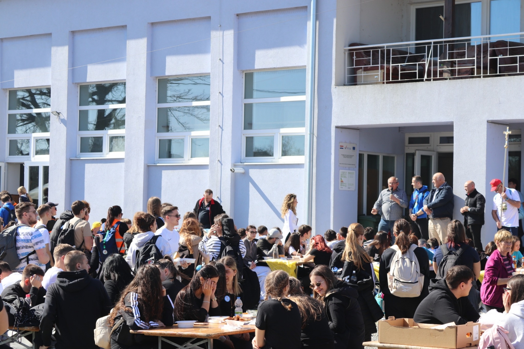 Program je započeo jutarnjim okupljanjem ispred župne crkve Gospe Lurdske u Uljaniku, odakle je nekoliko stotina mladih hodočasnika u 8 sati krenulo na put. Prva dionica vodila ih je preko Duhova i Antunovca do Poljane, gdje su stigli oko 11 sati.